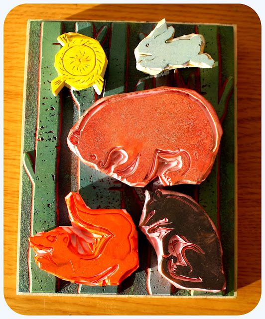 RépondreSupprimerExtra j'aime beaucoup ce livre on me le lisait petite et je le lis avec bonheur à mes petits... mais tu vois comme ton didi je garde un image forte de ce rusé de renard qui han mange la galette qu'on avait mit à refroidir...tes tampons sont extras et ton didi doit être ravi